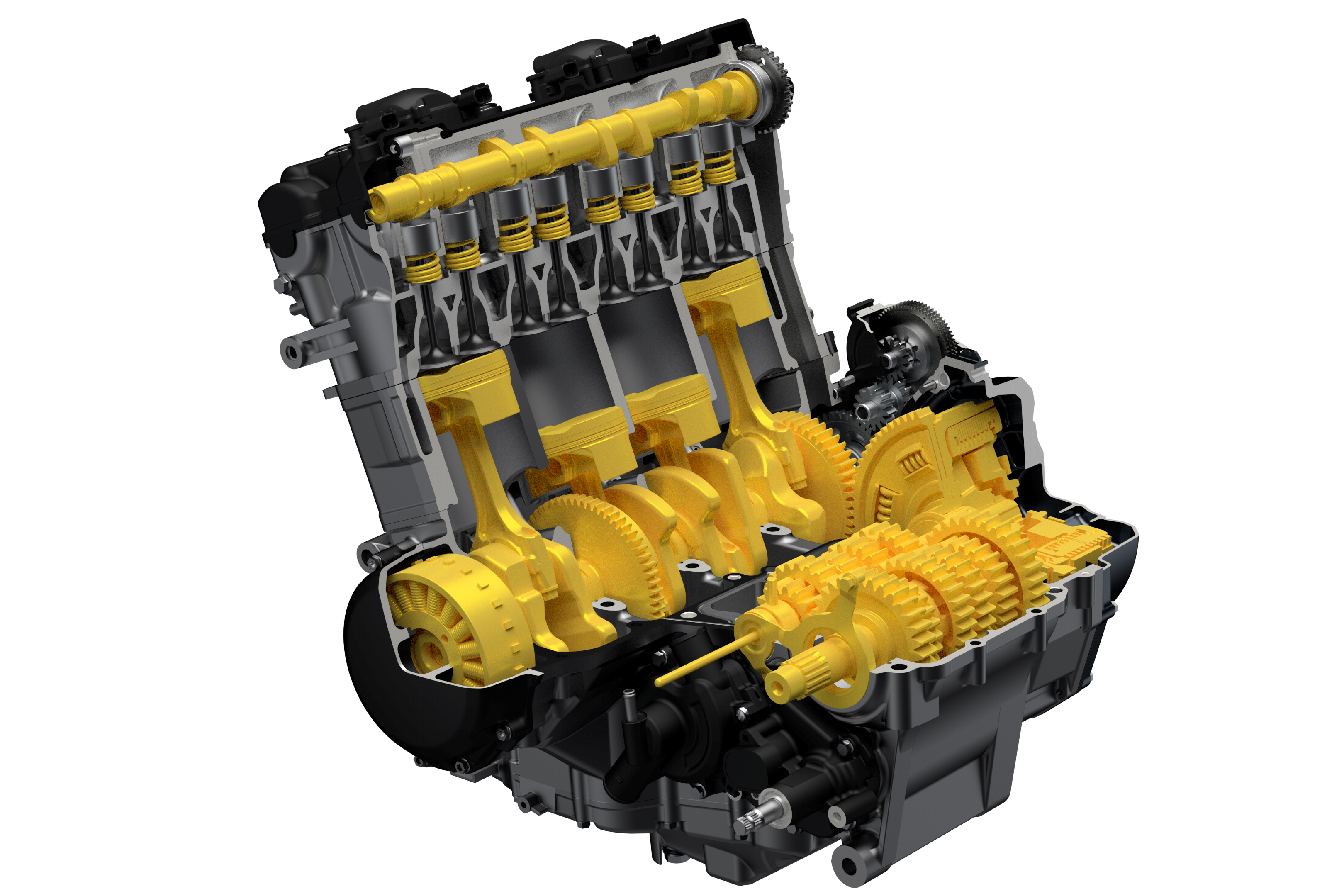 That increase in performance, plus the added durability, comes from a number of new or redesigned components. The new Hayabusa uses new, lighter pistons, more rigid and lighter conrods, new camshaft with revised cam profiles to reduce valve lift overlap and new cam chain tensioner, revised crankshaft and crankcases, new gearshift stopper, cam, and cam plate, and gears with revised bearing widths to improve shift feeling, new slipper clutch assembly, and new magneto.