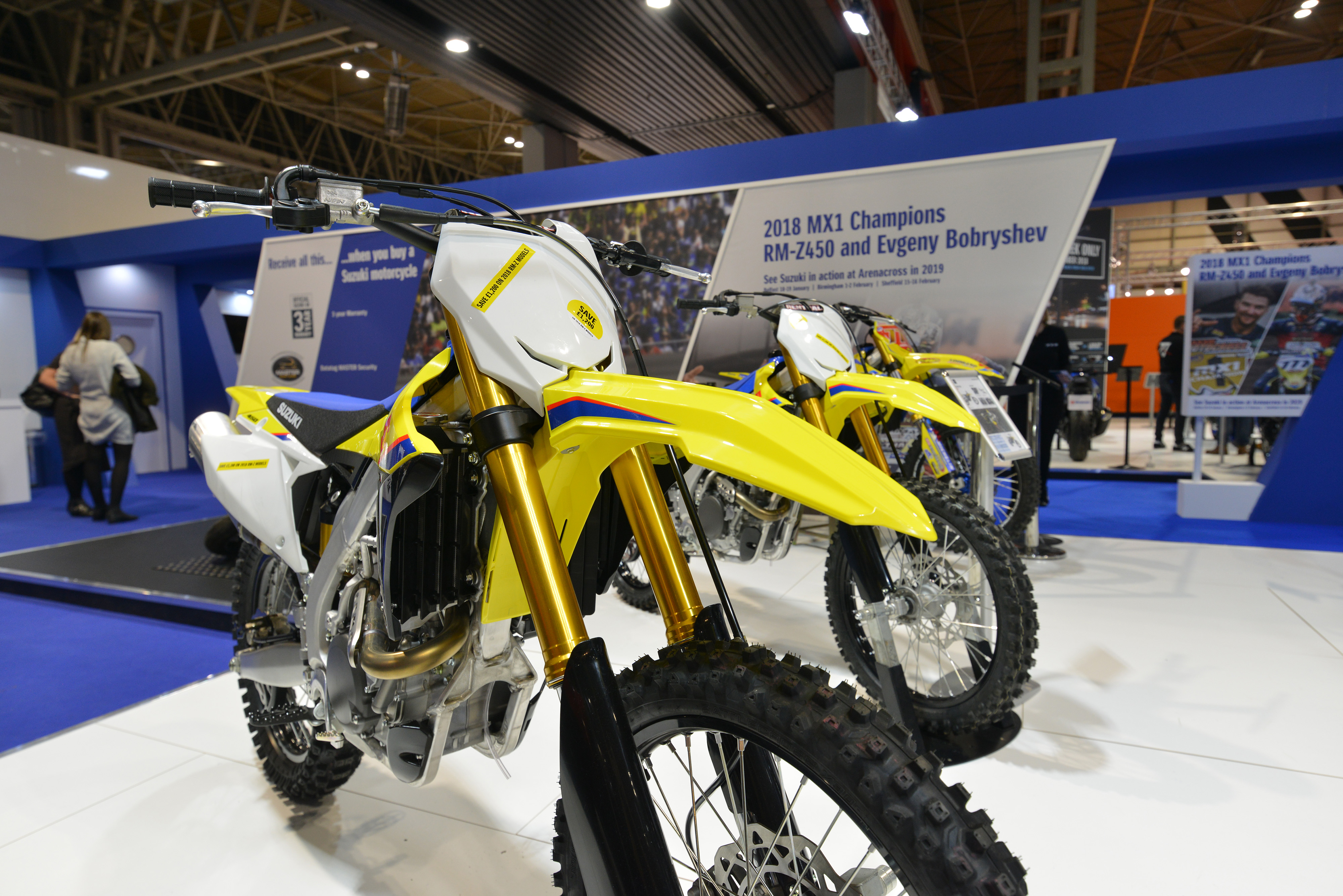 The RM-Z450, which won the 2018 British Motocross Championship and is the reigning Arenacross title-winning machine, will be displayed alongside the new KingQuad 750 ATV to showcase Suzuki’s off-road range.