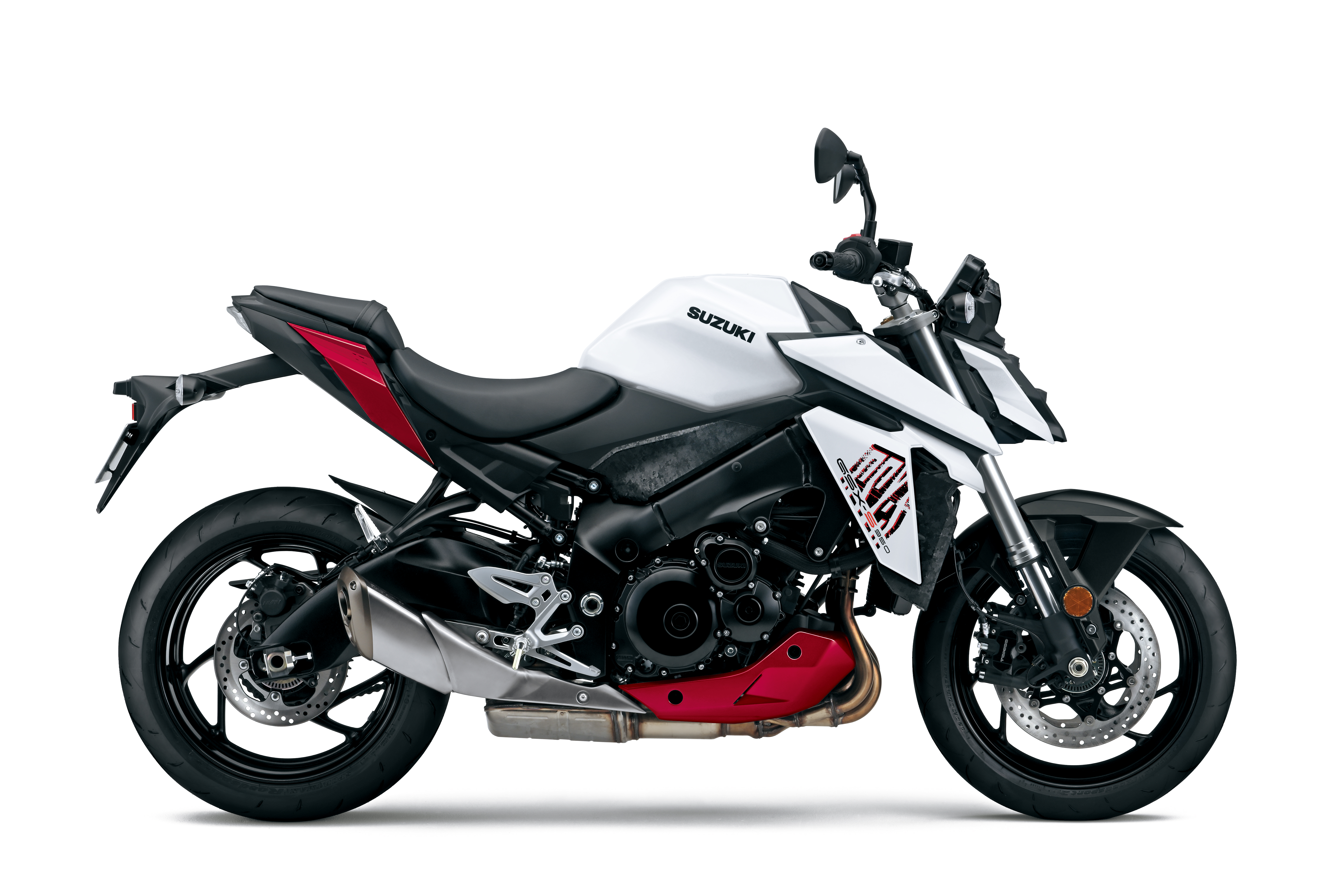 Available in August, the GSX-S950 comes in a striking white and red, a matt black, plus a metallic triton blue, all adorned with the visually different 950 logo on the radiator shrouds.