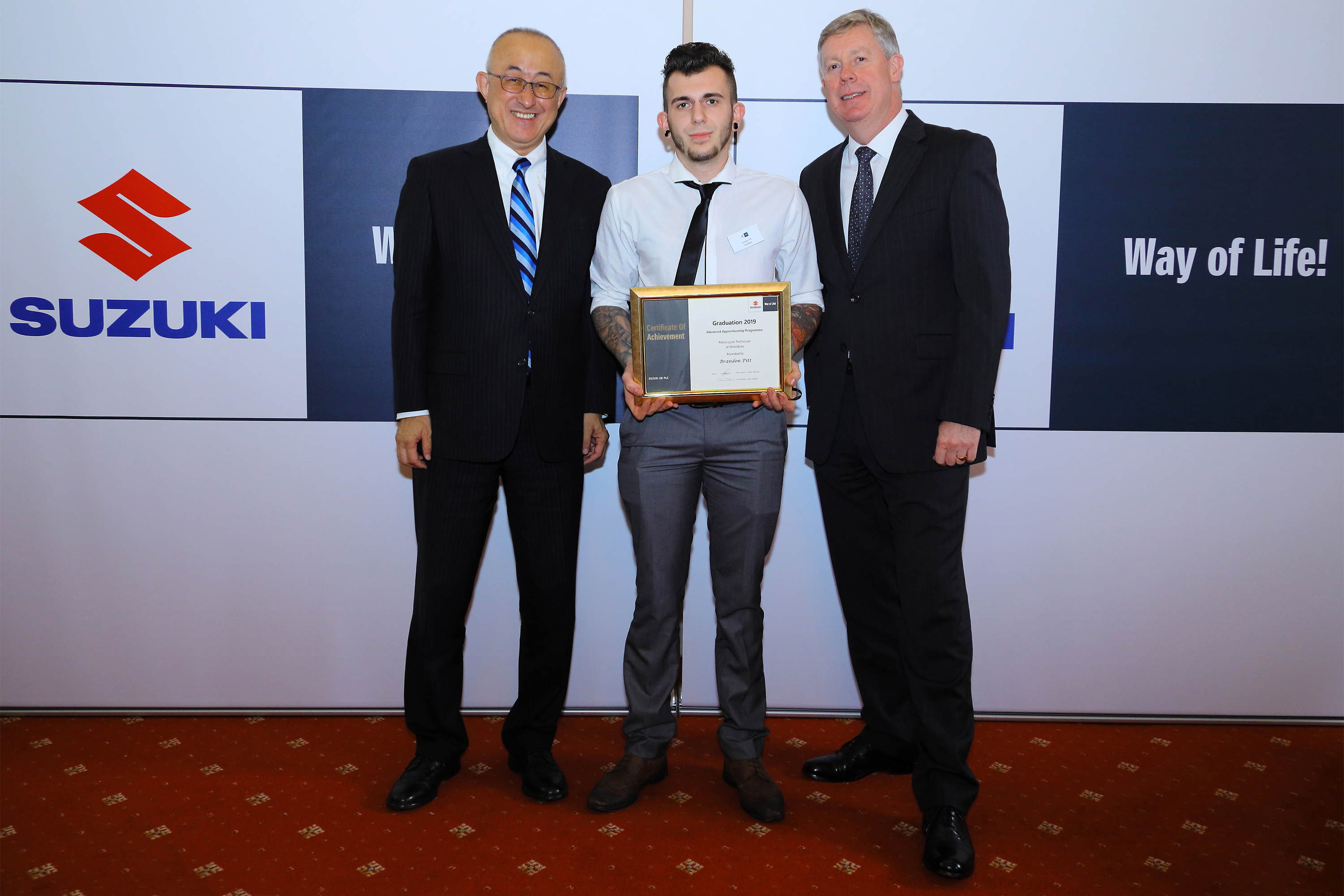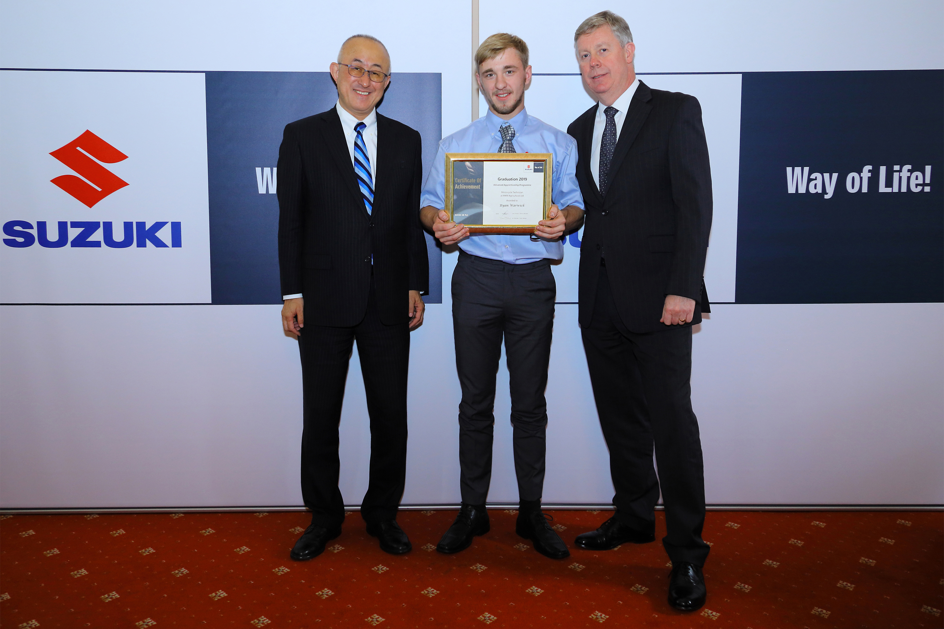 Graduates received their certificates from Suzuki GB’s managing director, Nobuo Suyama, and director of aftersales, Denis Houston.