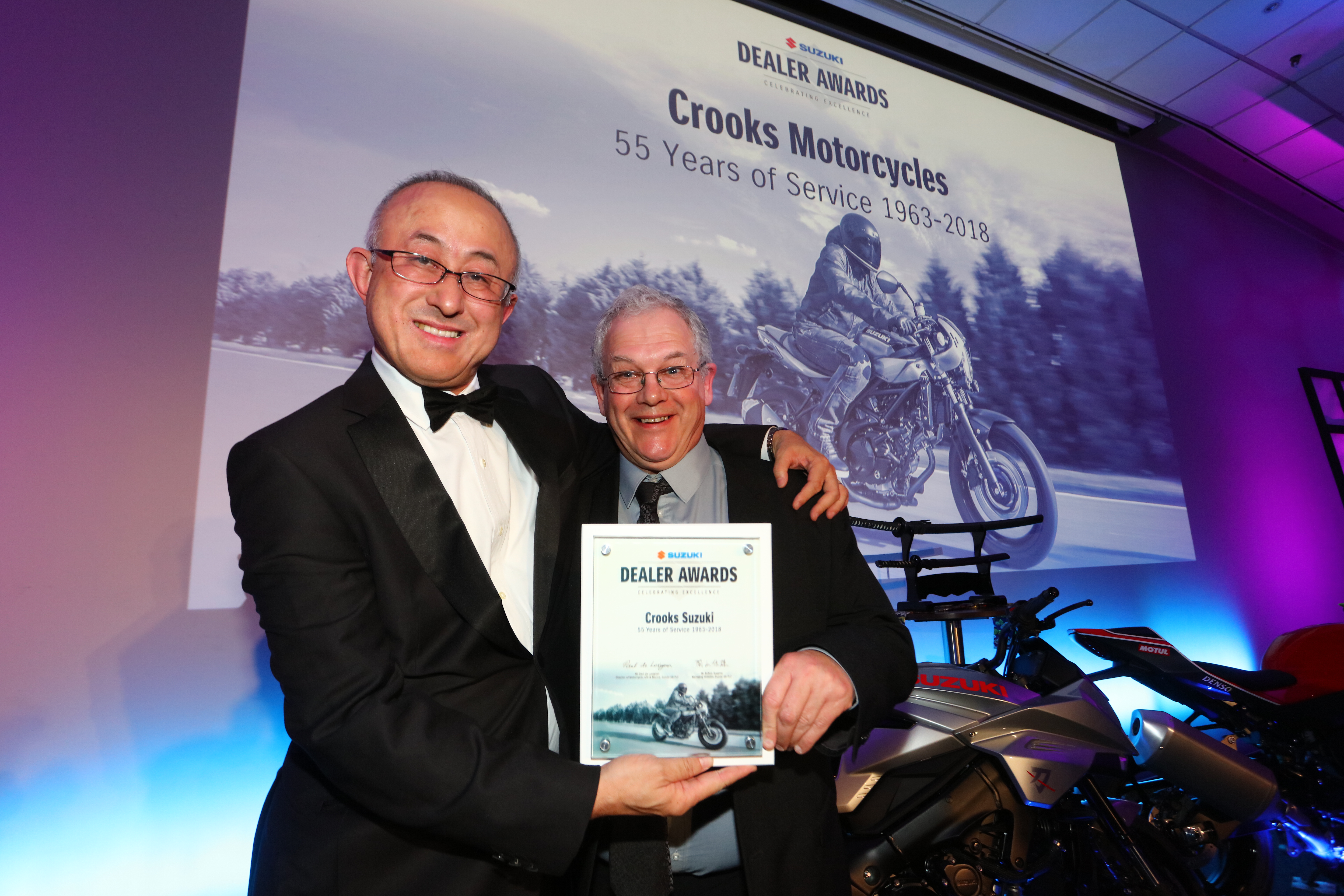 Concluding with the awards ceremony, 16 awards were handed out including a number of long-service awards which totalled 285 years of combined Suzuki experience. Three long established dealers – Crescent Motorcycles, Crooks Suzuki and JW Groombridge Motorcycles – picked up a very impressive 55-year’s service award.