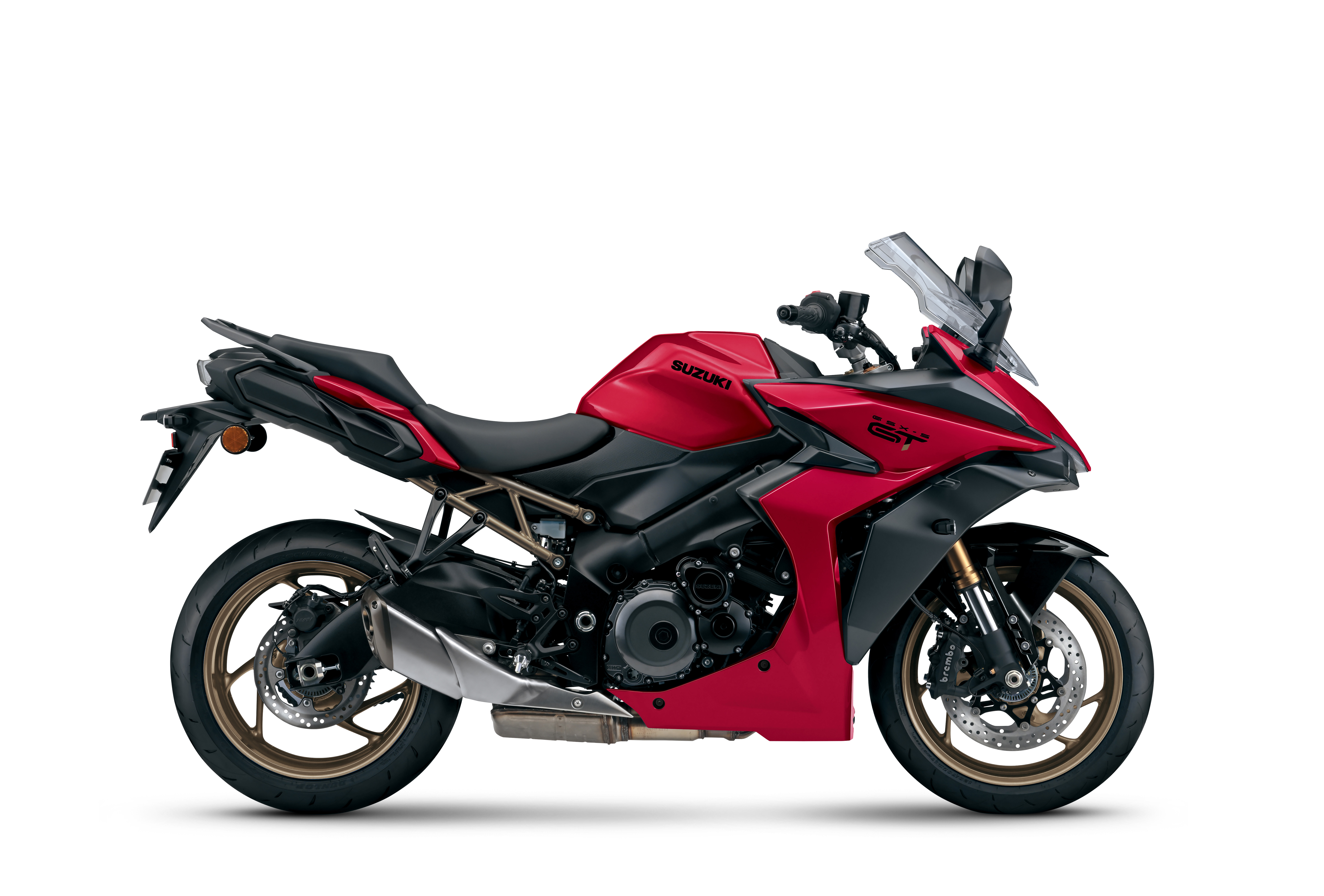 The GSX-S1000GT sports tourer will continue to be available in the bold, all-red livery it came in in 2024. That colour scheme will be joined by a classy Metallic Oort Grey model with bronze wheels and bronze subframe, and a new Pearl Vigor Blue.
