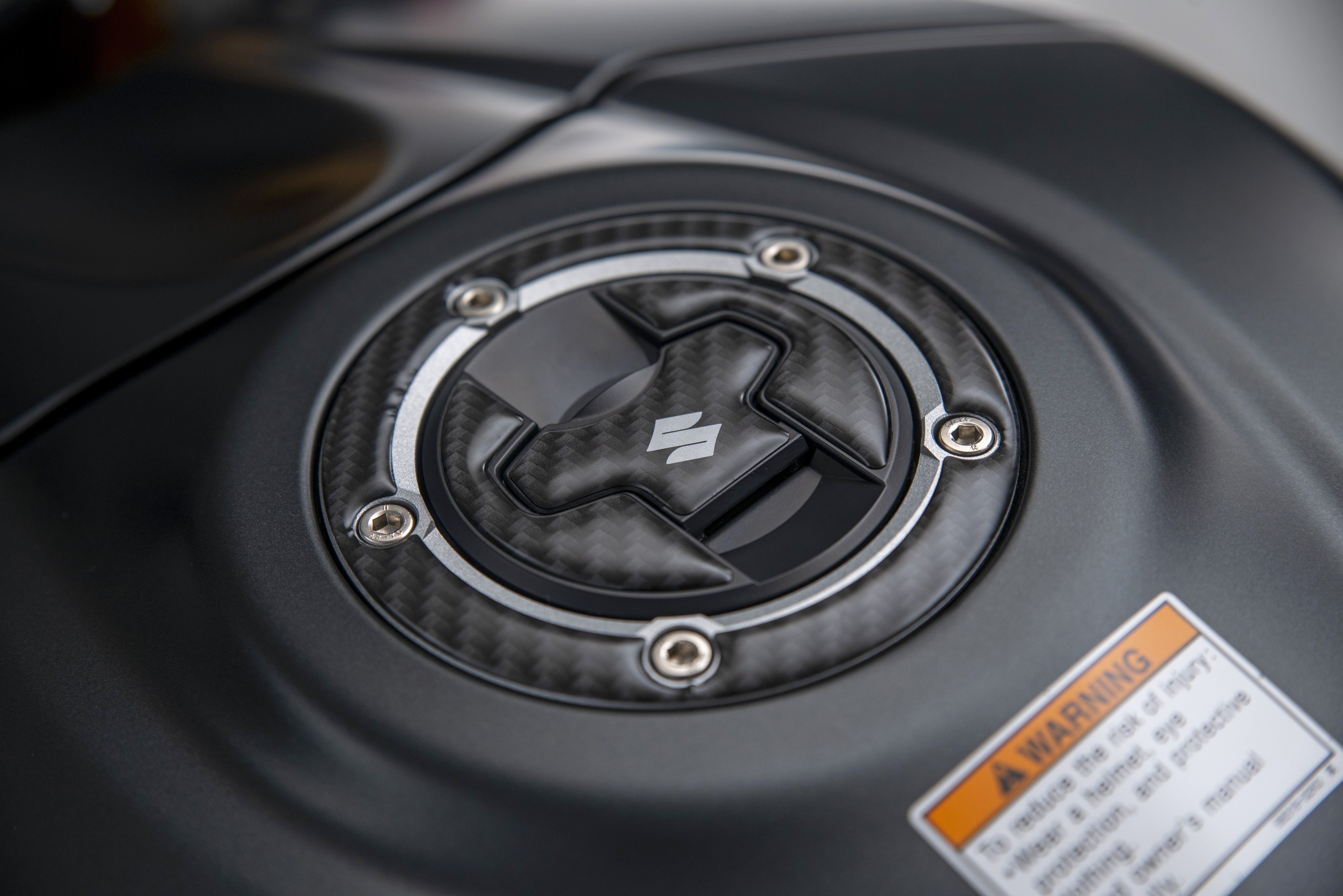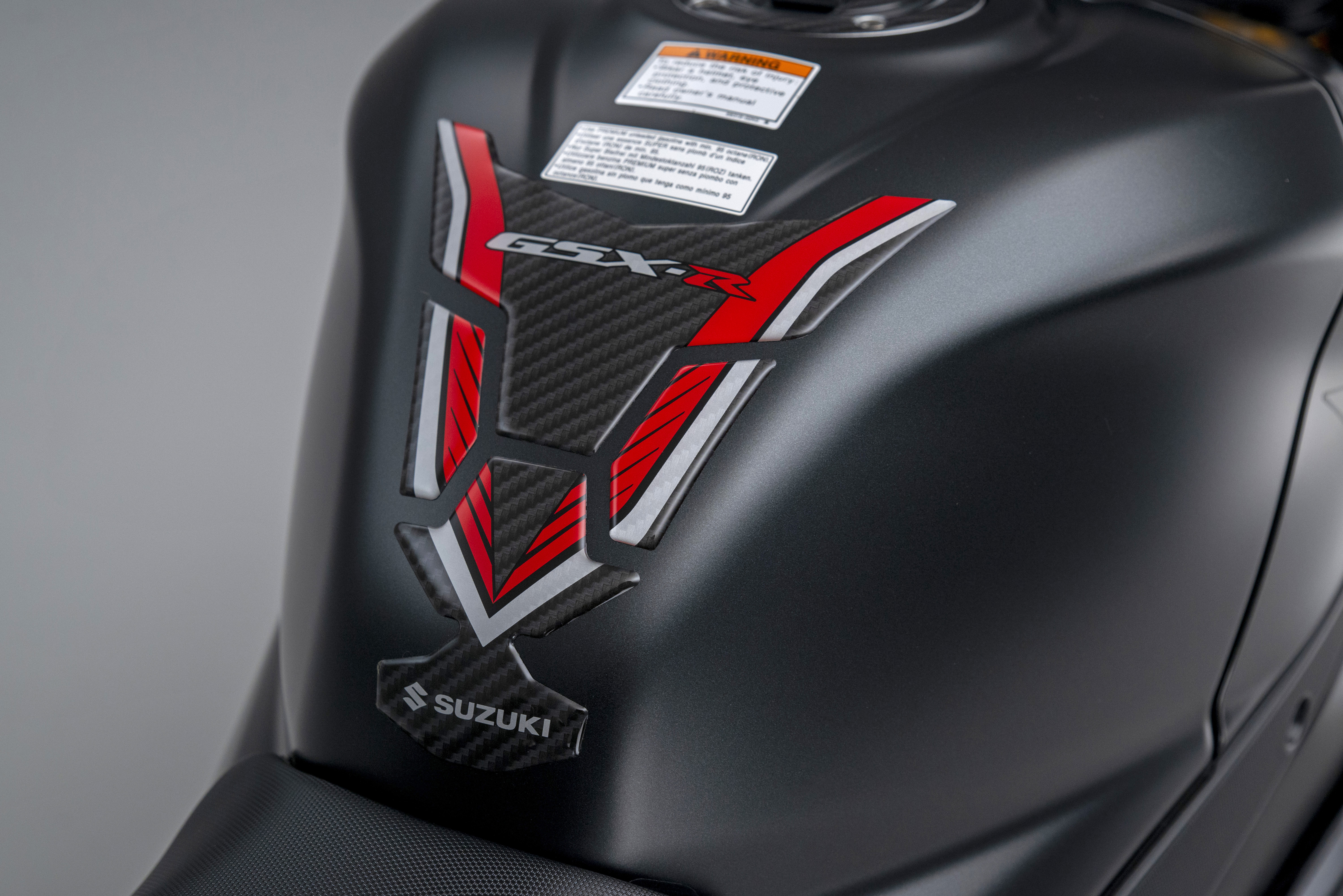 Like the iconic GSX-R1000 K6 Phantom from 2006, the new GSX-R1000R Phantom is completed with a Yoshimura exhaust – this time an R11 silencer and heatshield finished in black metal magic with a carbon cap – and a smattering of genuine Suzuki accessories, including track-focussed brake and clutch lever guards, a tank pad and fuel cap trim, and a smoked double bubble screen.