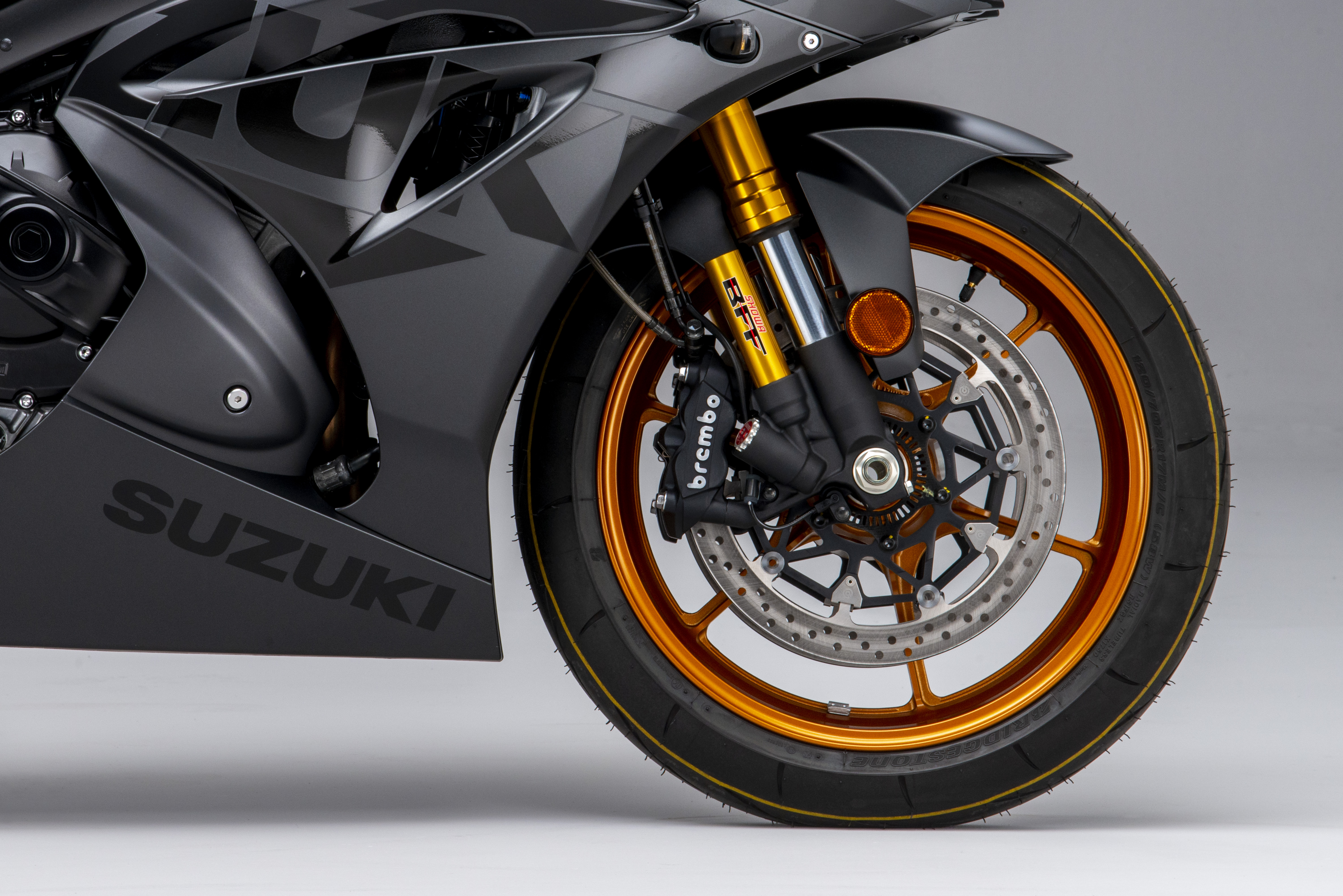 The GSX-R1000R produces 202PS from its inline-four cylinder engine, which uses the same variable valve timing system as the MotoGP world championship-winning GSX-RR. A full suite of electronics features a bi-directional quickshifter, lean angle-sensitive, 10-mode traction control and ABS, launch control, and three power modes.