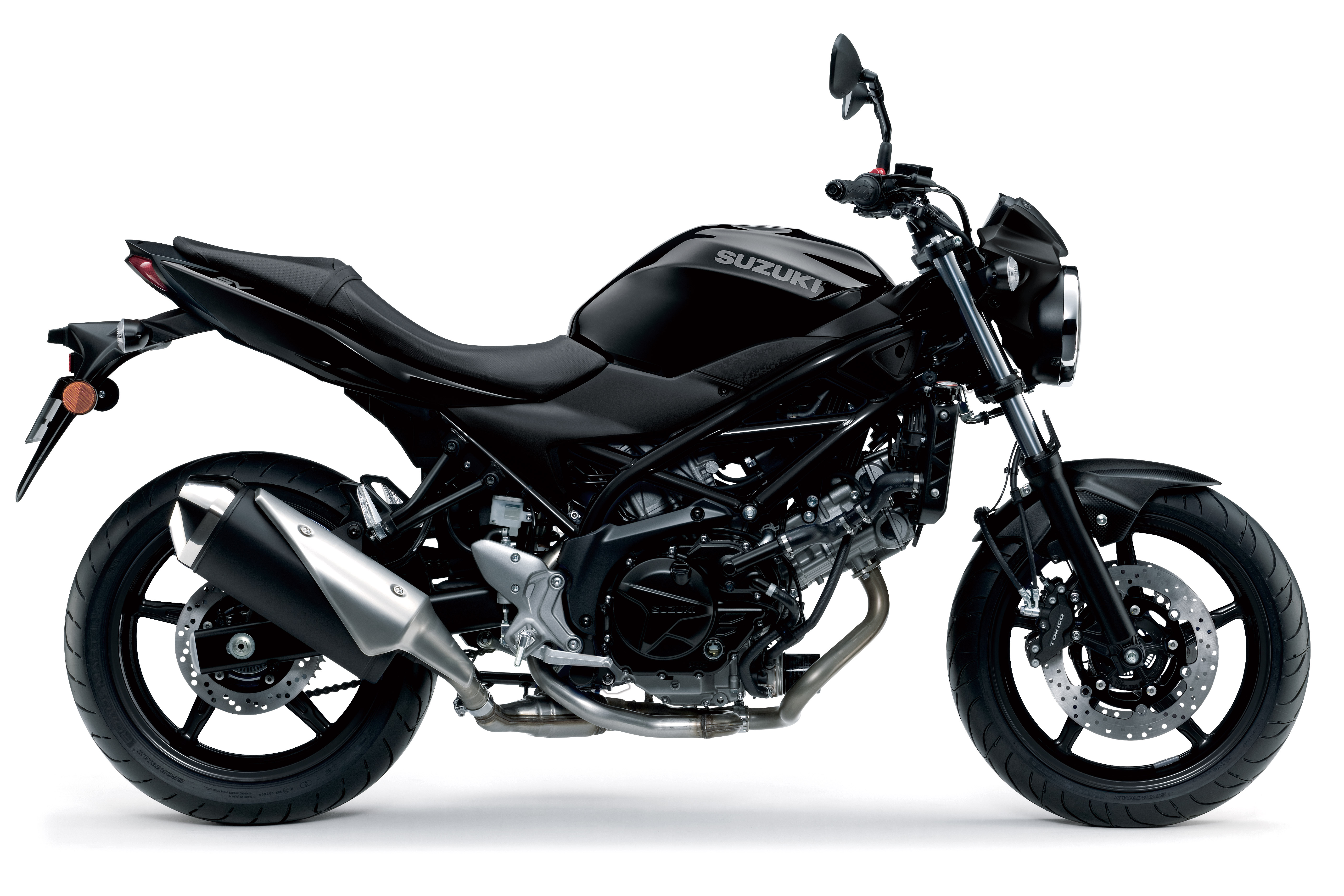 The ever-popular SV650 comes in a new metallic silver with an eye-catching blue trellis wrapped around its punchy 645cc V-twin engine and blue wheels. A matt black version uses a similarly striking red frame and wheels, while those looking for a more understated SV650 can opt for a gloss black model with black frame and wheels.