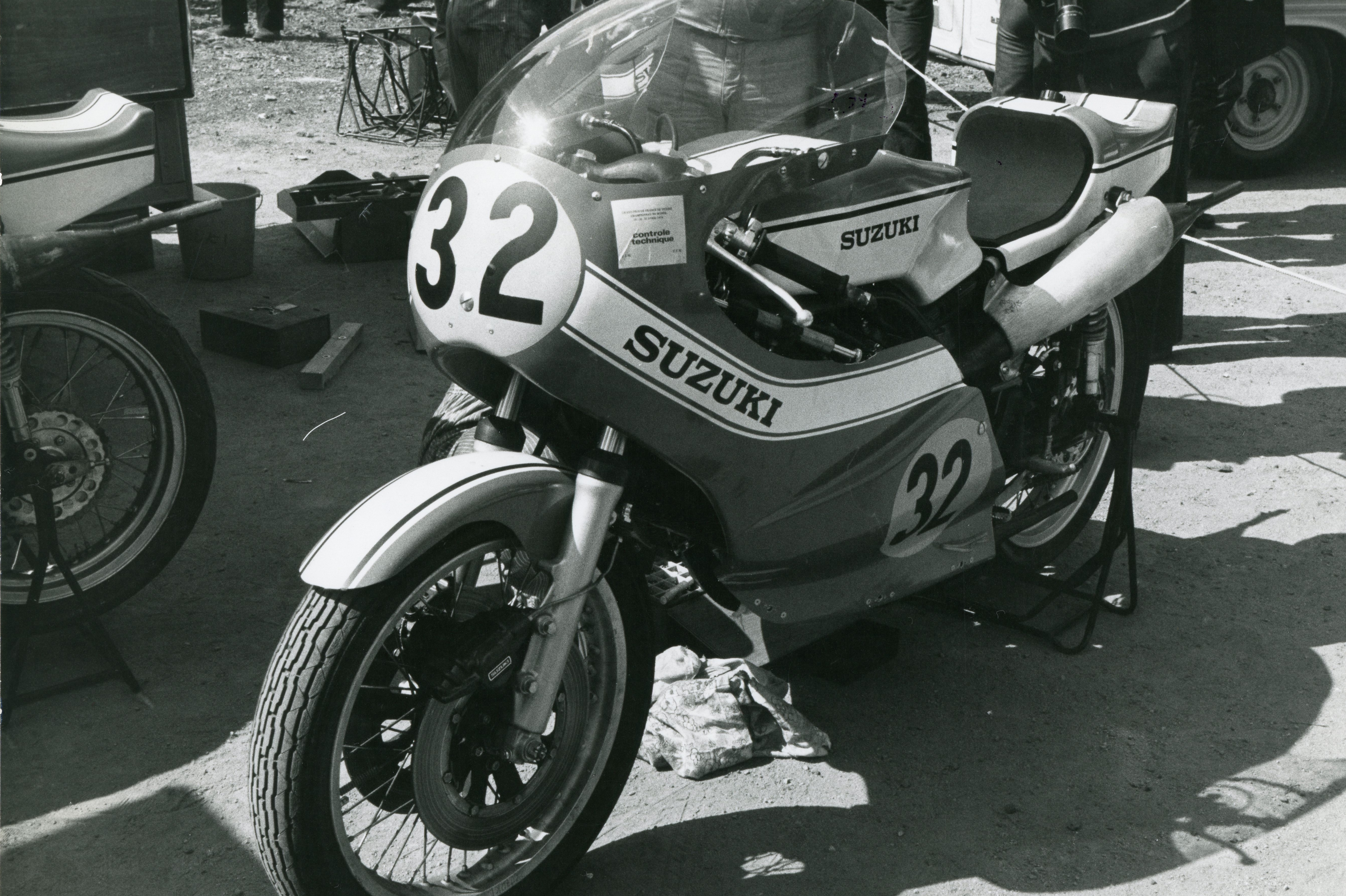 Barry Sheene got his first taste of the machine in November 1973, but to help keep the weight down the G-54 employed an open cradle chassis with no lower chassis rails beneath the engine. However, despite finishing second in its first ever Grand Prix at Clermont-Ferrand in April with Sheene aboard, by June the chassis had been replaced with a conventional double cradle design. It was raced by Sheene, Paul Smart, and Jack Findlay that year.