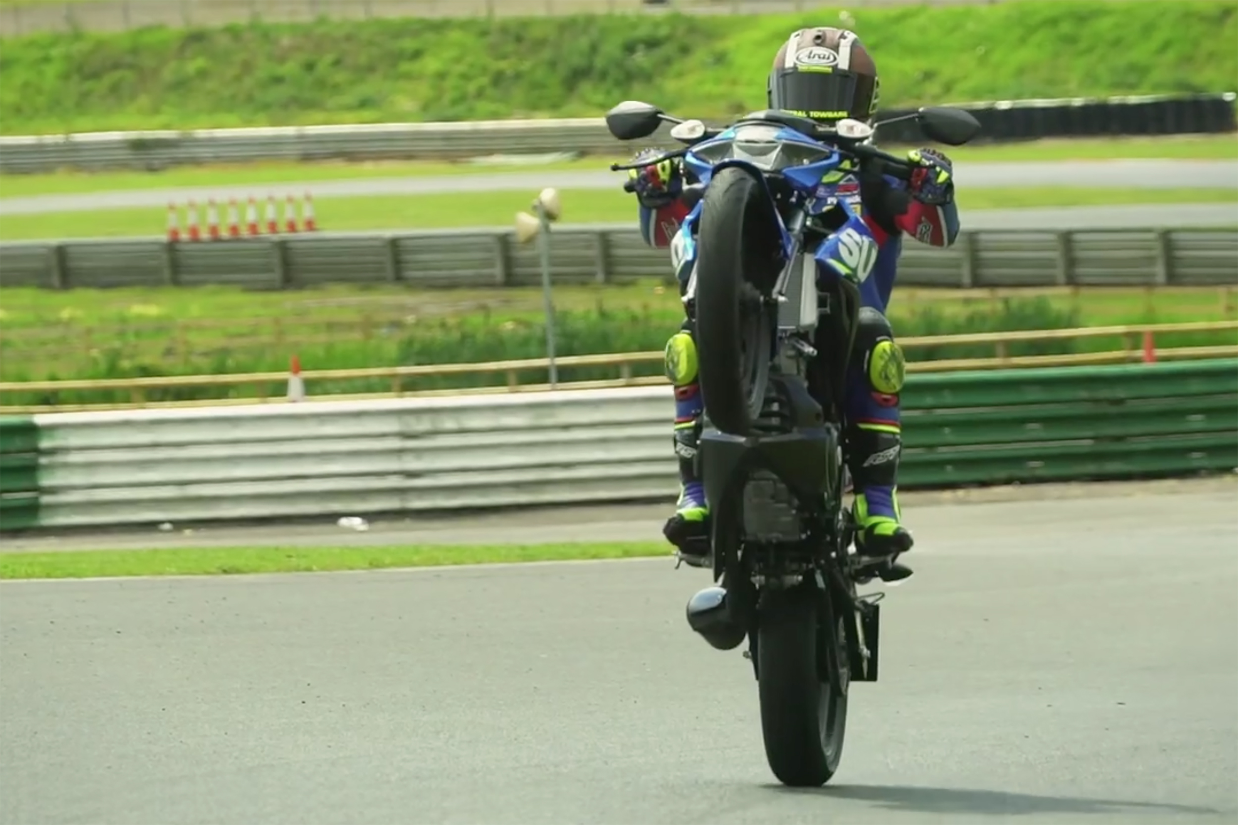 On the new GSX-S125, the duo also had to prove themselves by seeing who could wheelie for the longest distance, and then negotiate a tight section from a moto gymkhana course.