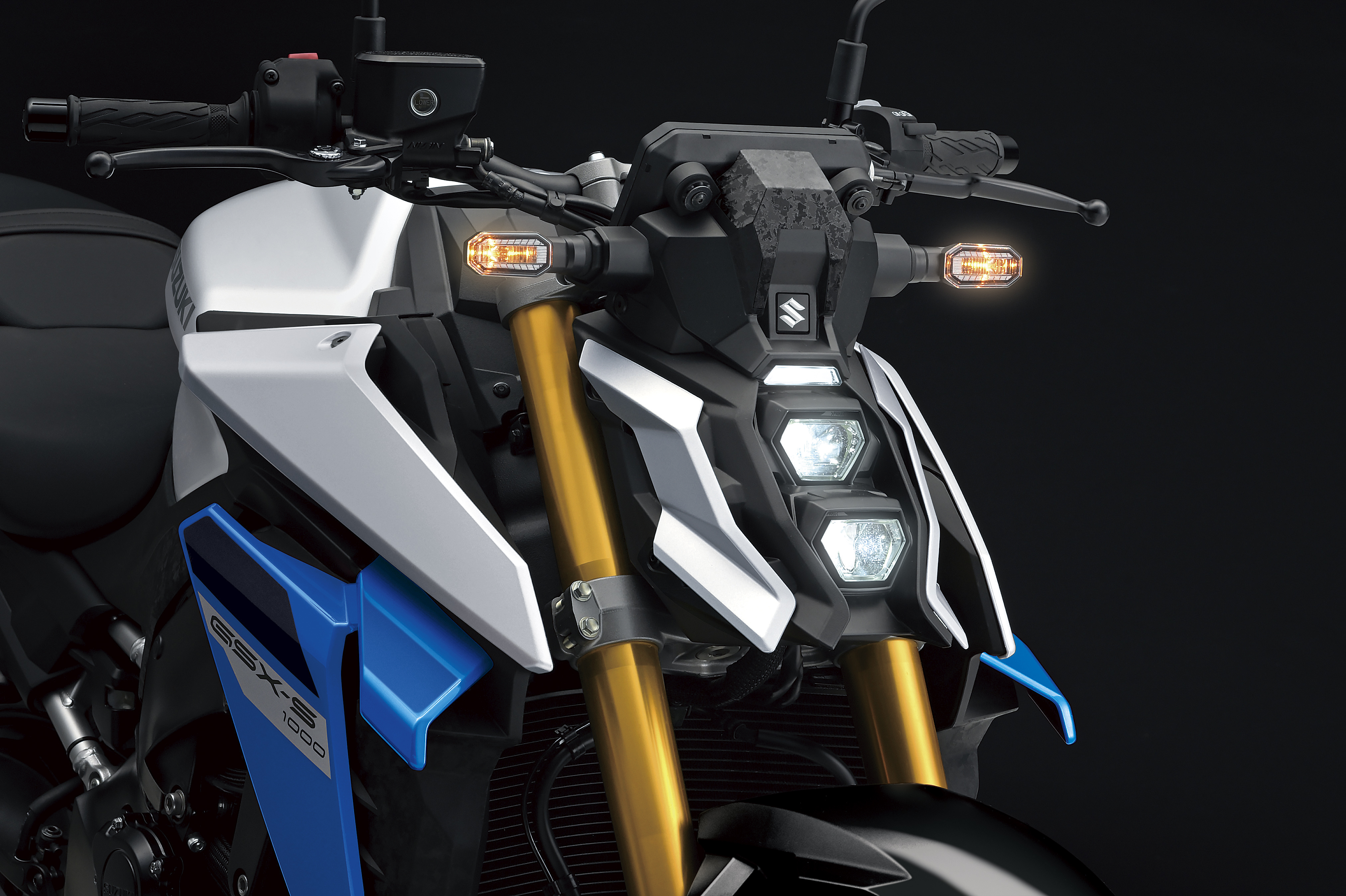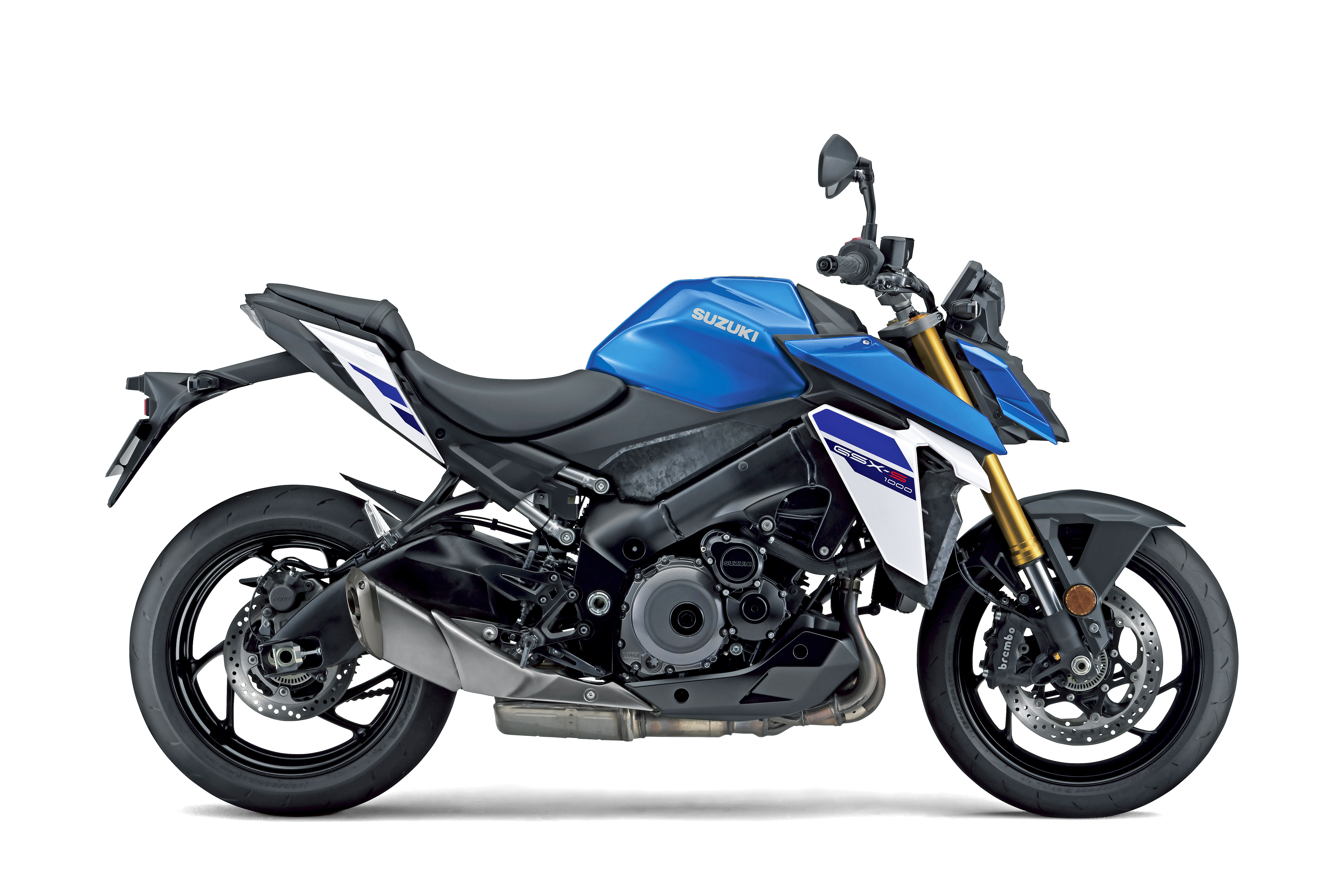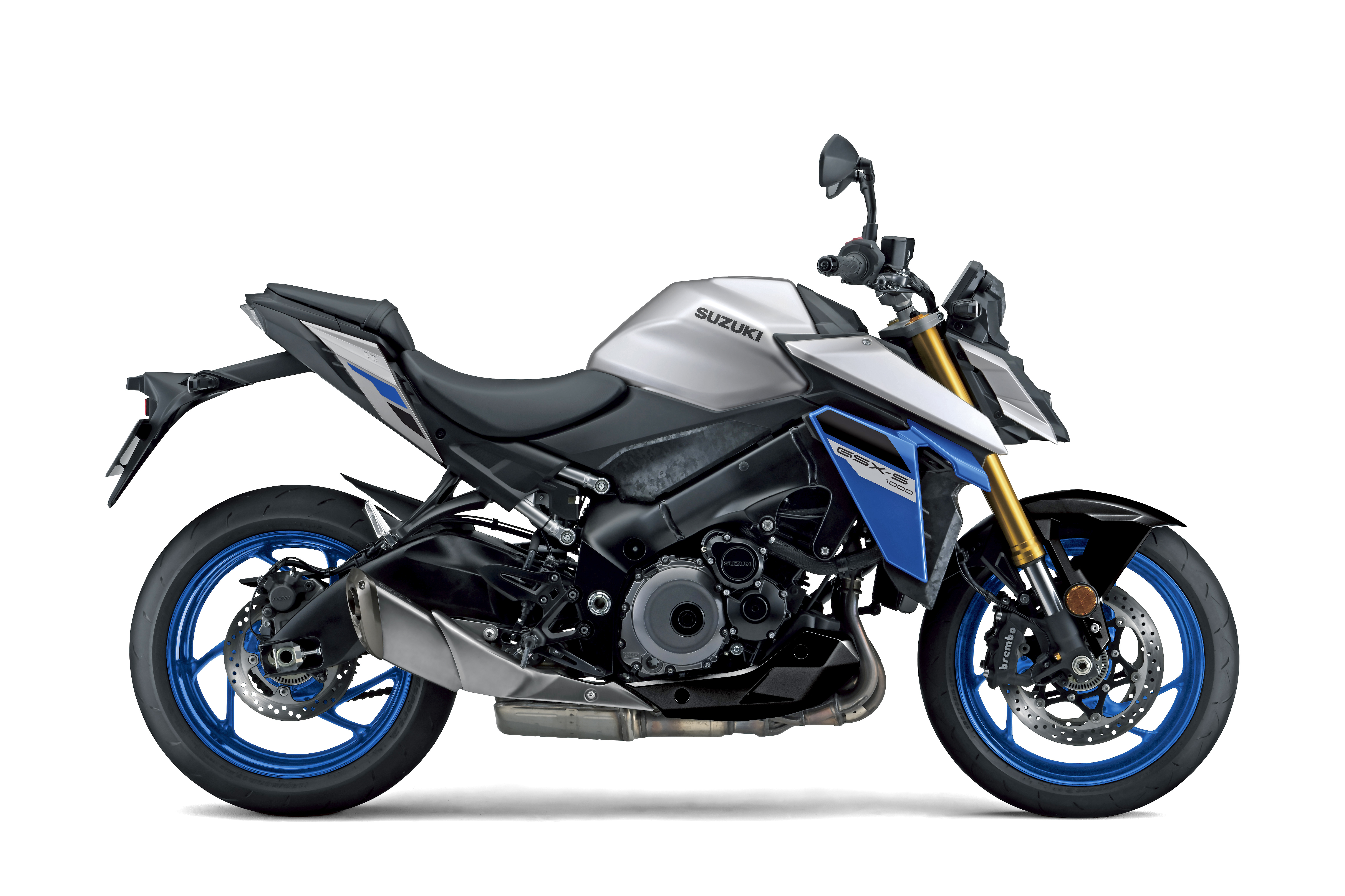 The updated GSX-S1000 comes in Suzuki’s trademark blue and white, with black wheels. There’s also an understated all-black version, and new silver option, with blue accents and blue wheels.